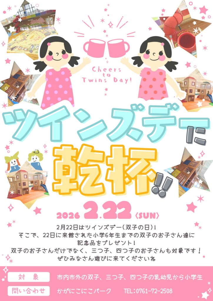 2月22日はツインズデー(双子の日)❣22日に来館された双子のお子さん達に記念... -